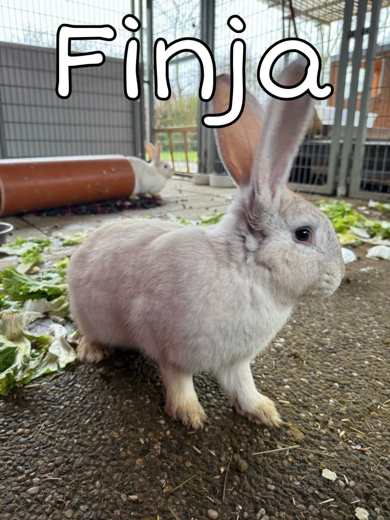 Finja ist ebenfalls sehr neugierig und erkundet gerne alles, was ihr in den Weg kommt. Sie lässt sich am liebsten anfassen von den Mädels, schreckt aber trotzdem bei hastigeren Bewegungen zurück. Sie ist definitiv eine der dominanteren Kaninchen im Gehege und legt sich gerne mal mit den anderen an, wenn ihr etwas nicht passt.